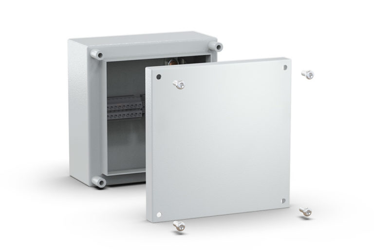Box, Door, Lid, Mounting Rail, Fixing screws, Wall mounting brackets and Earthing facilities